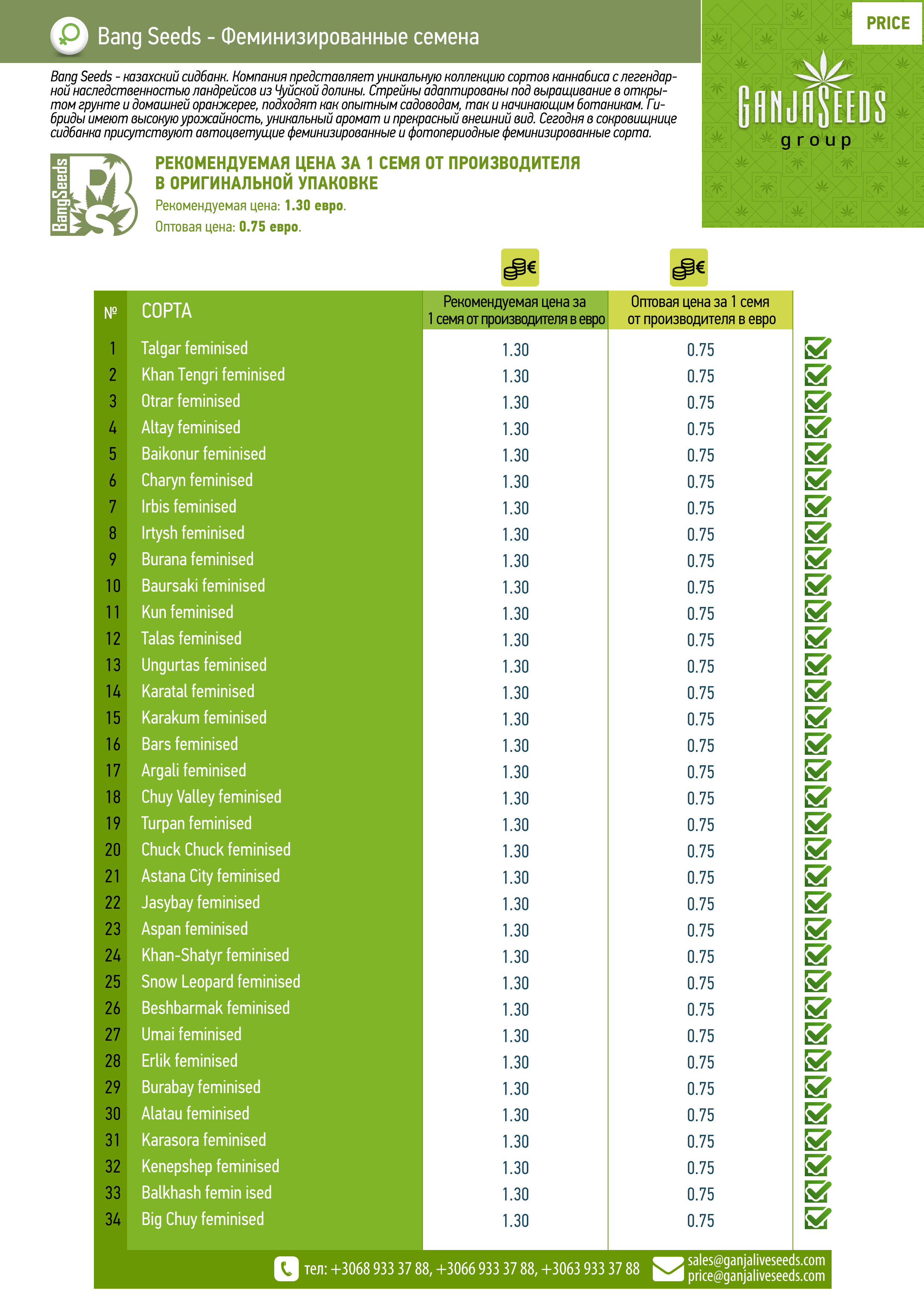 Оптовый прайс семян конопли BangSeeds