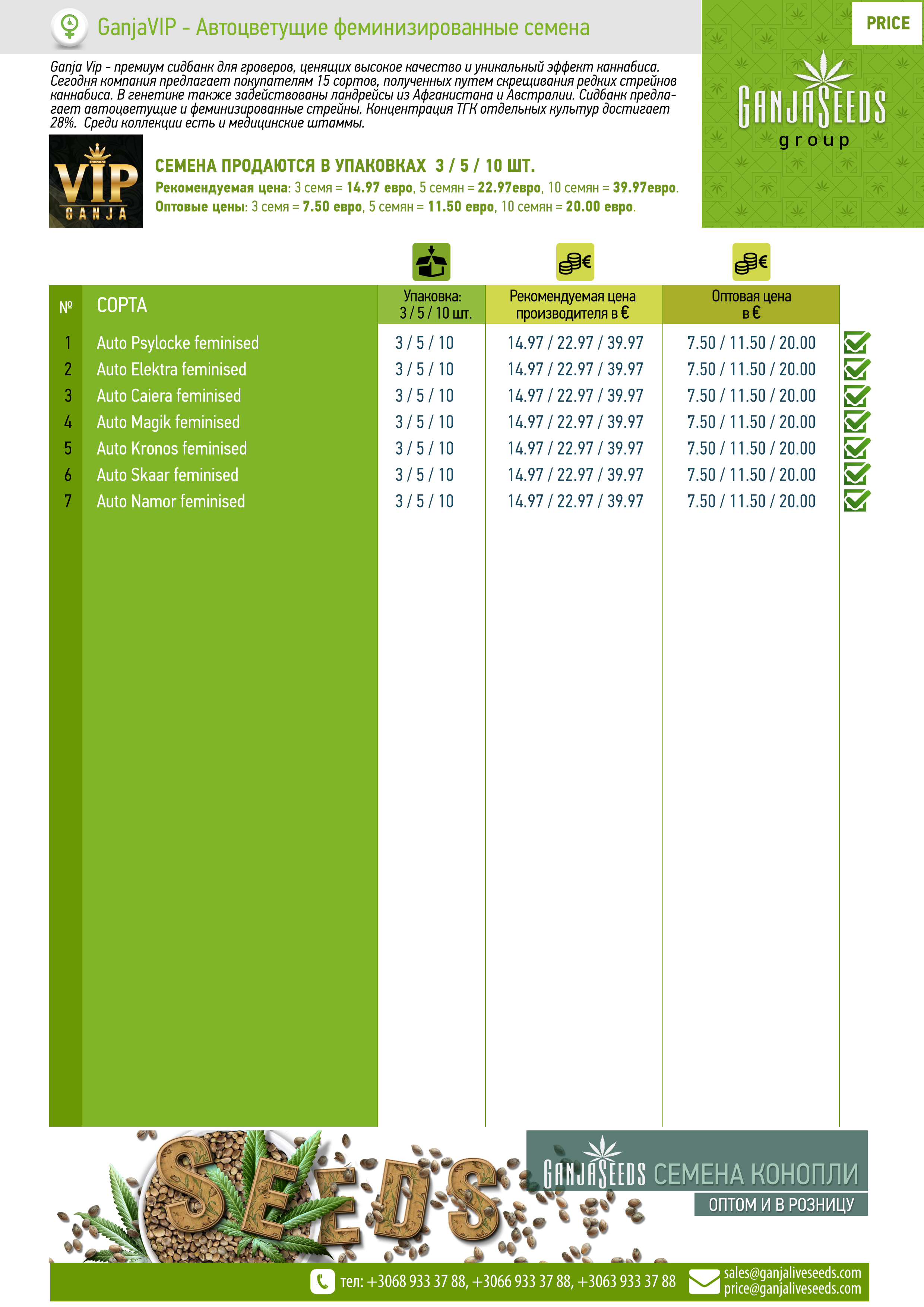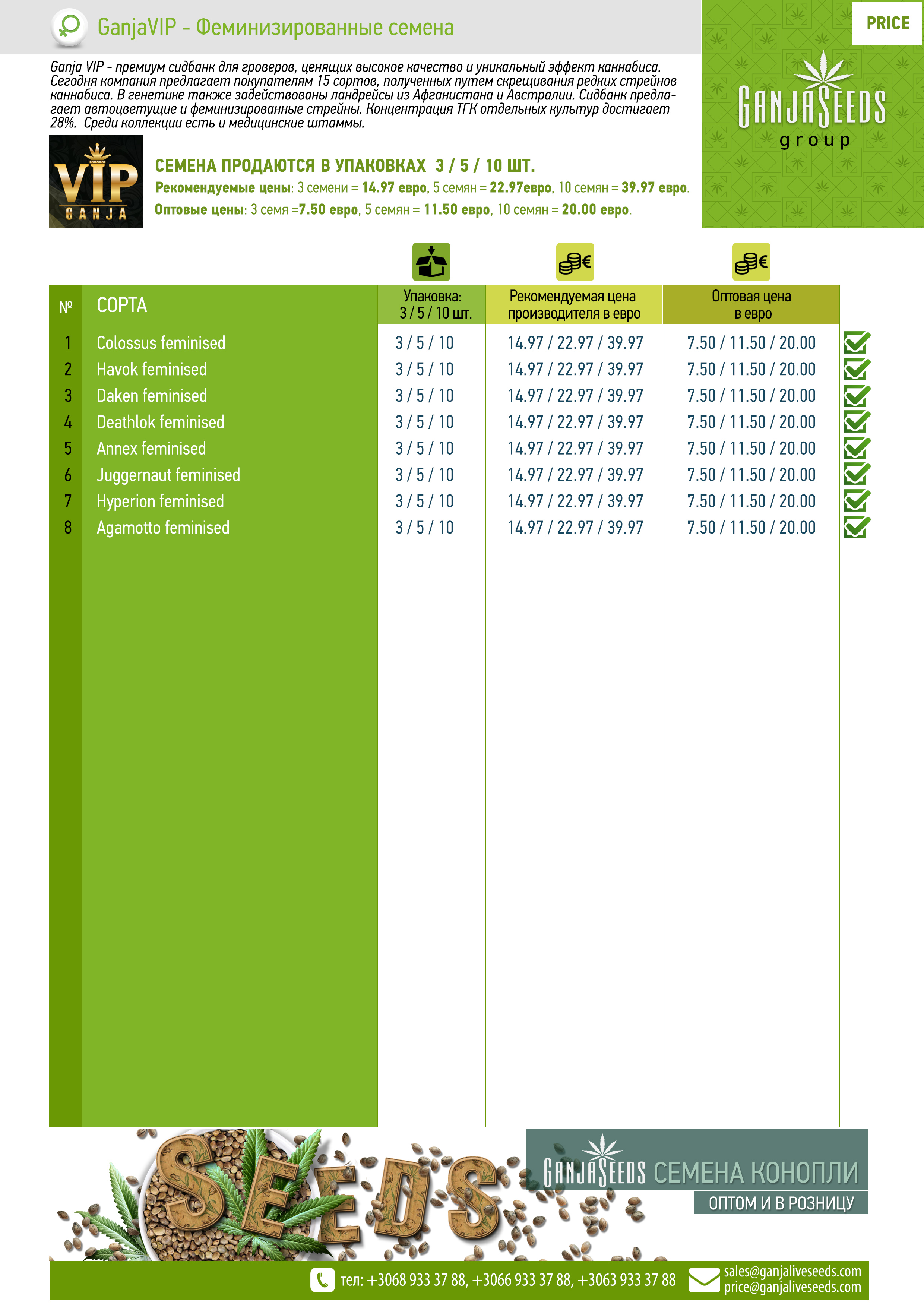 Оптовый прайс семян конопли GanjaVIP